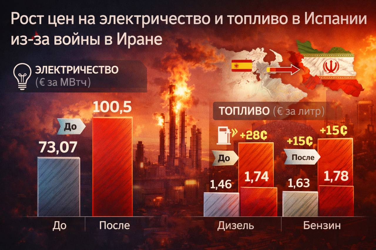 В Испании начали ощущаться экономические последствия напряжённости на Ближнем Востоке. По информации RTVE, в стране заметно выросли цены на электроэнергию и автомобильное топливо после обострения ситуации вокруг Иран.